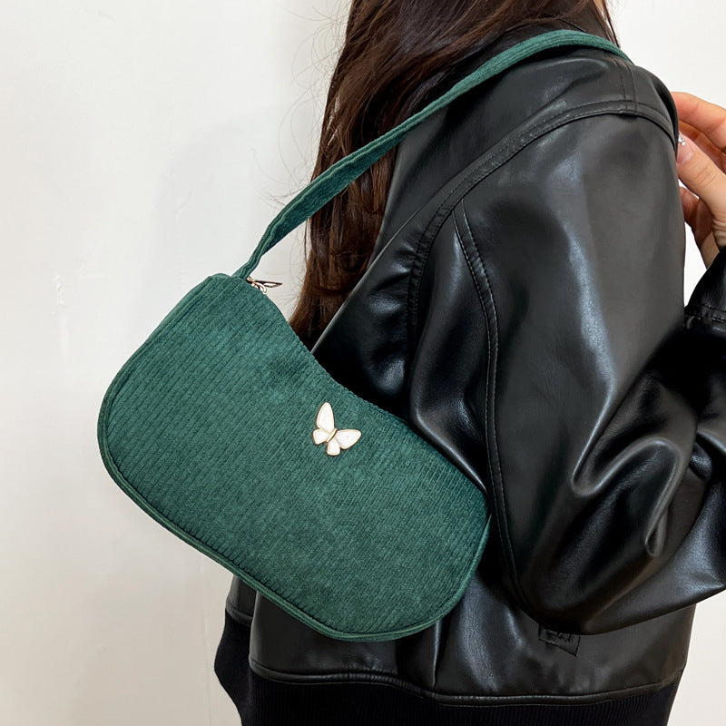 Solid Color Corduroy Butterfly Large Capacity Shoulder Bag